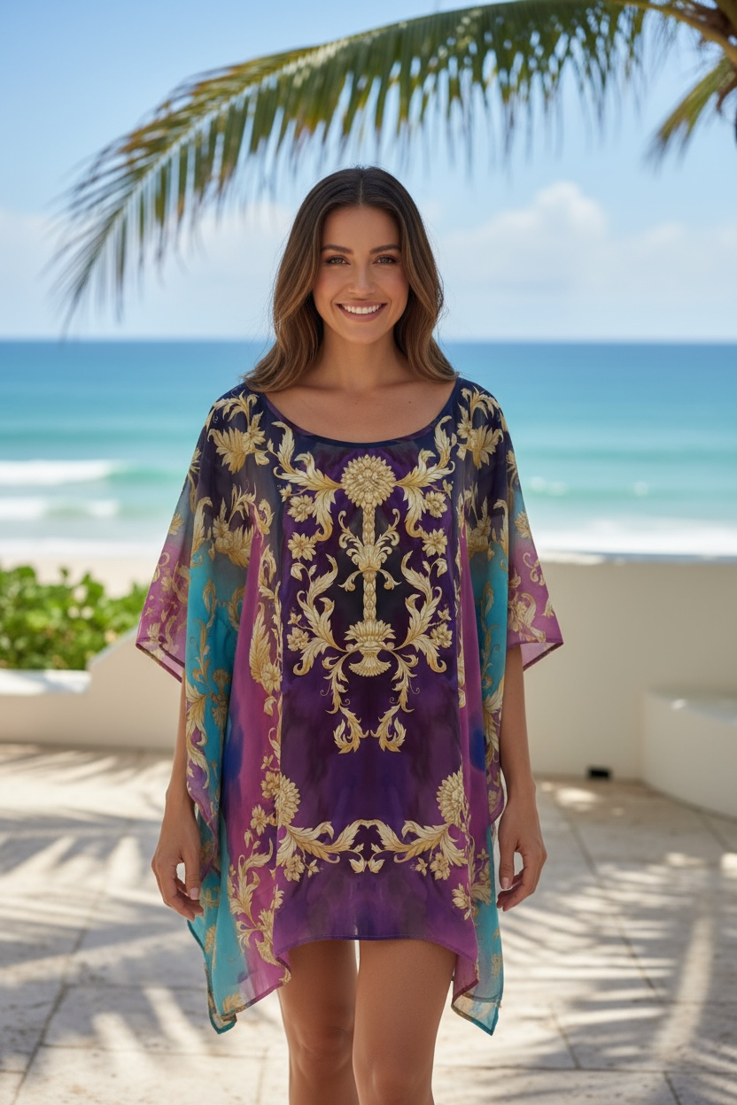 Beautiful Poly Georgette Boat Neck hand beaded Kaftan