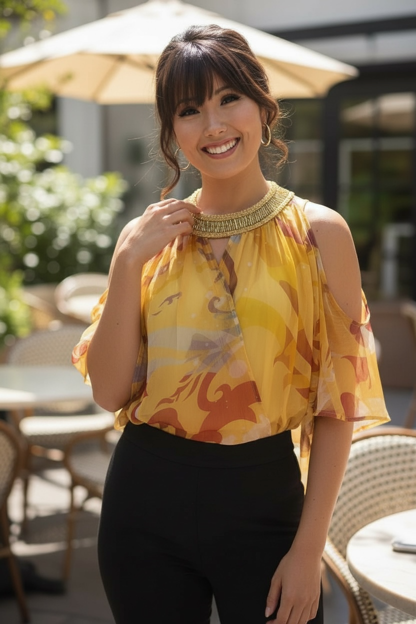 Cute beaded high neck layered top