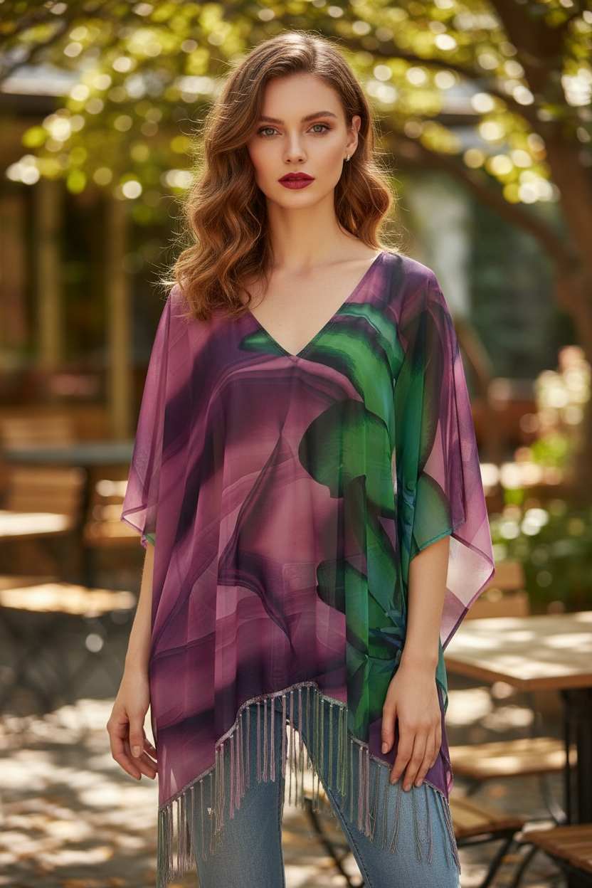 Heavy weight georgette kaftan with ombré fringing