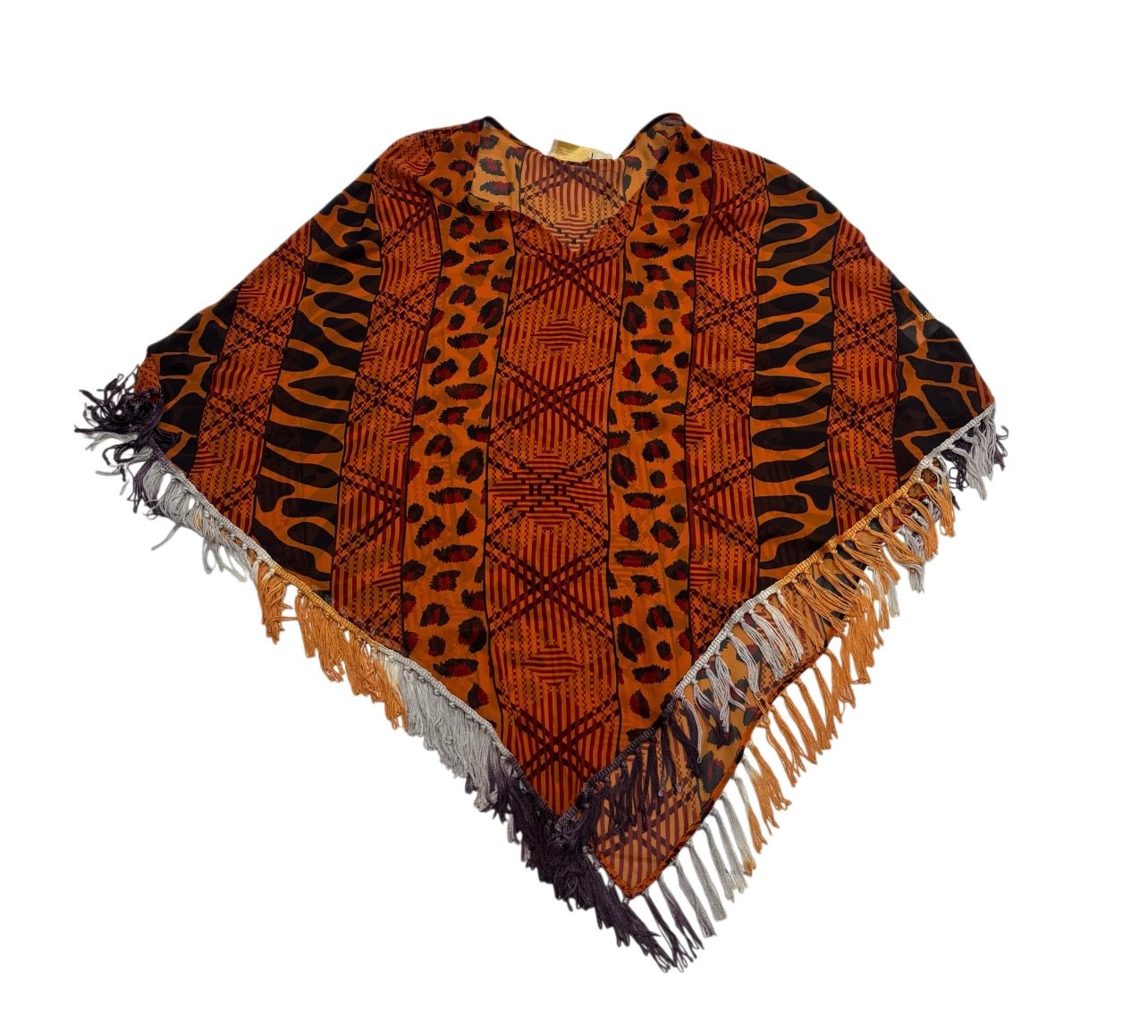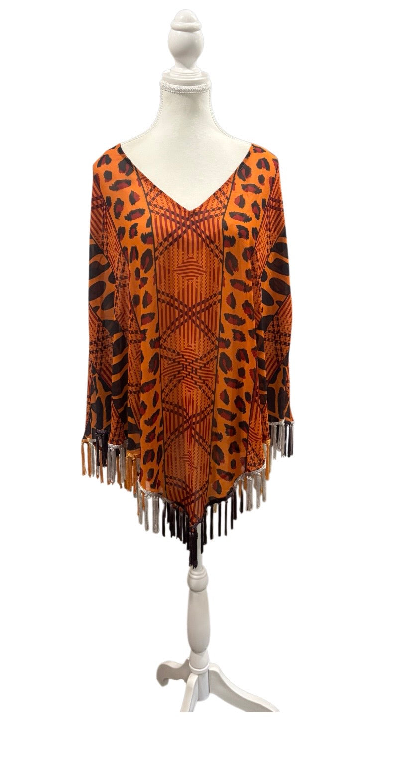 V NECK PONCHO WITH SILKY OMBRE FRINGING