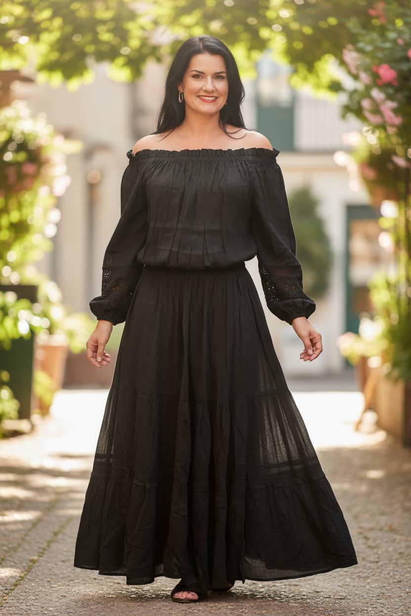 The shirring around the waist is very soft and there is a tie on the neck to adjust fit.