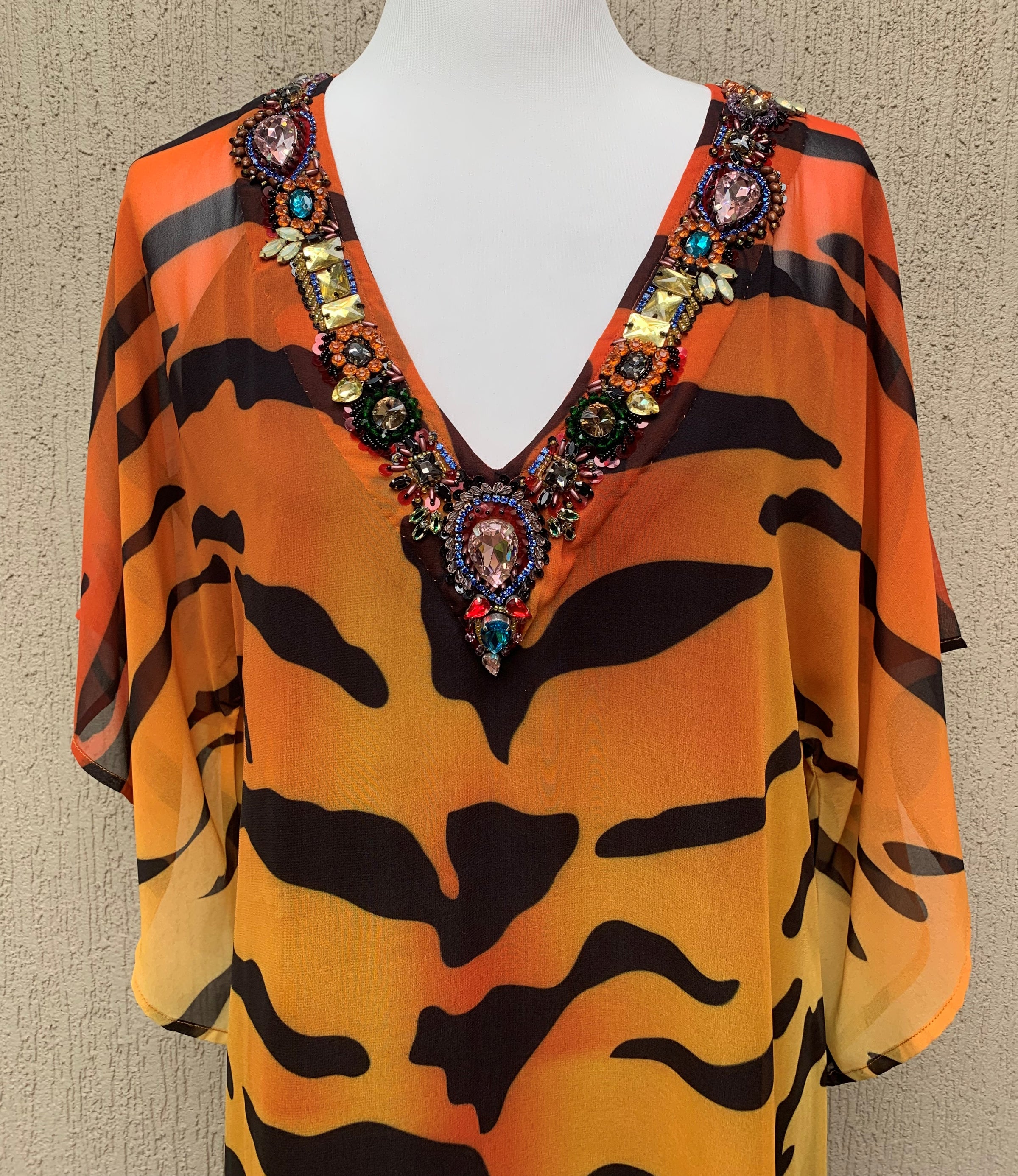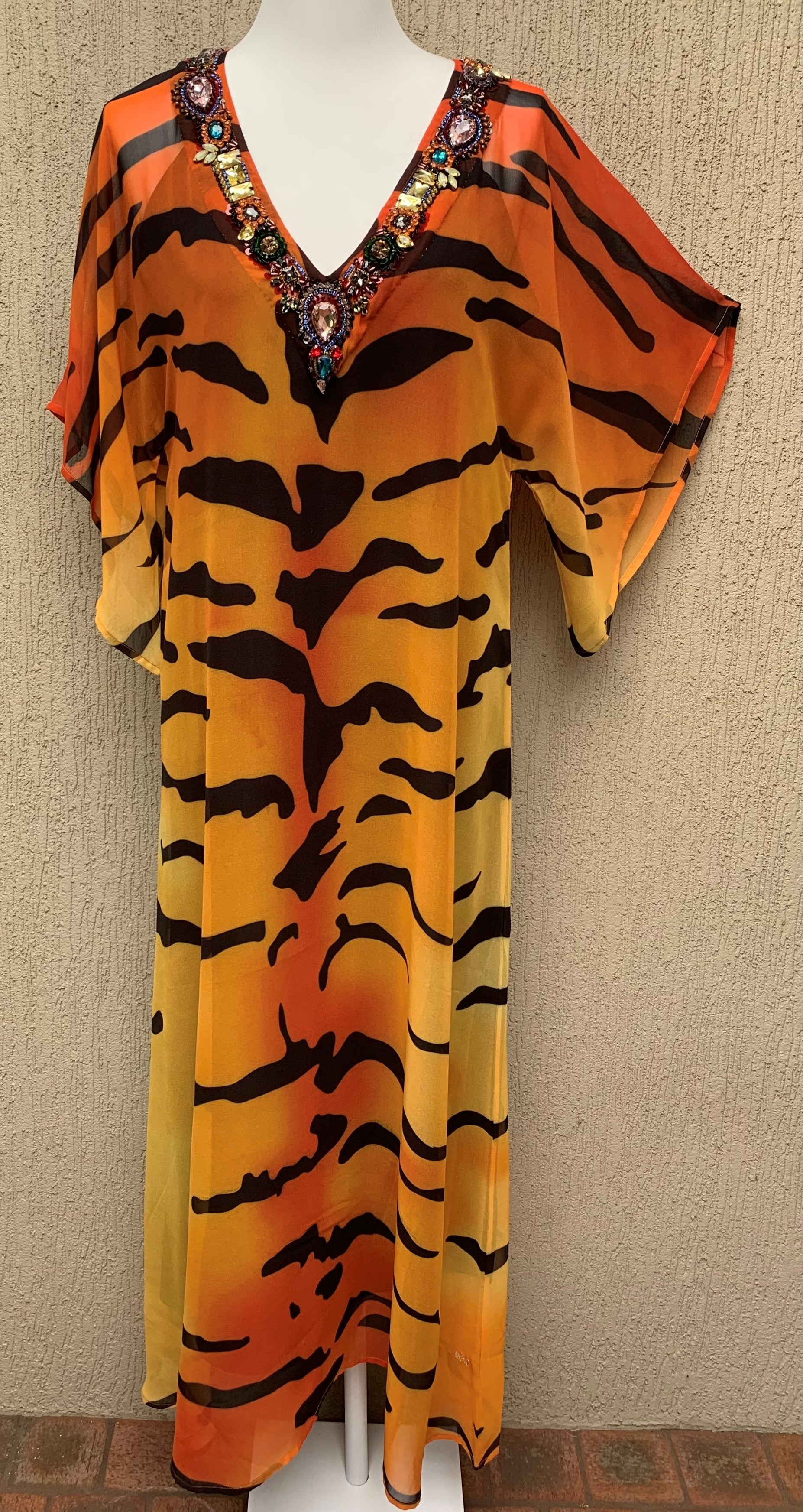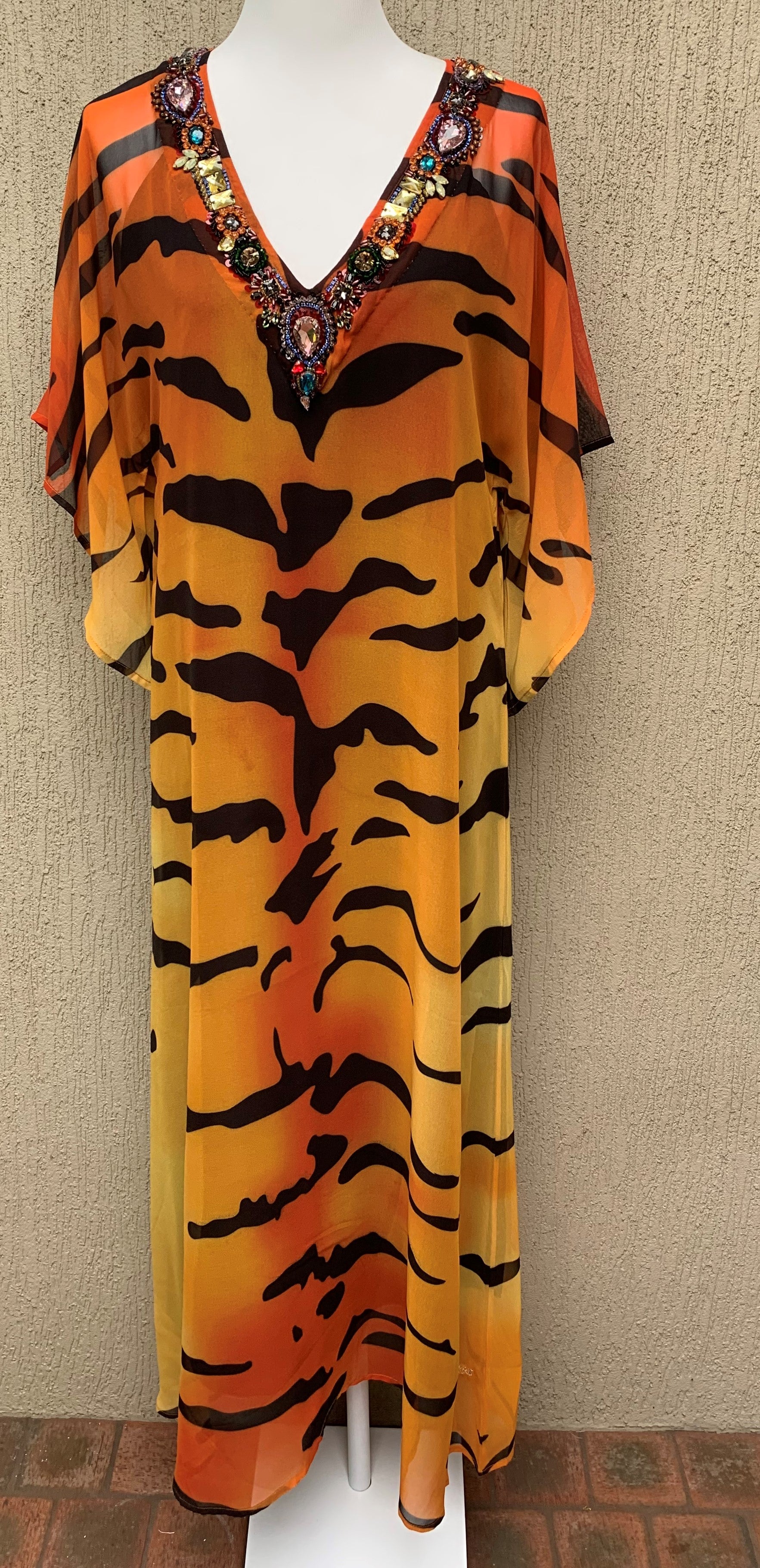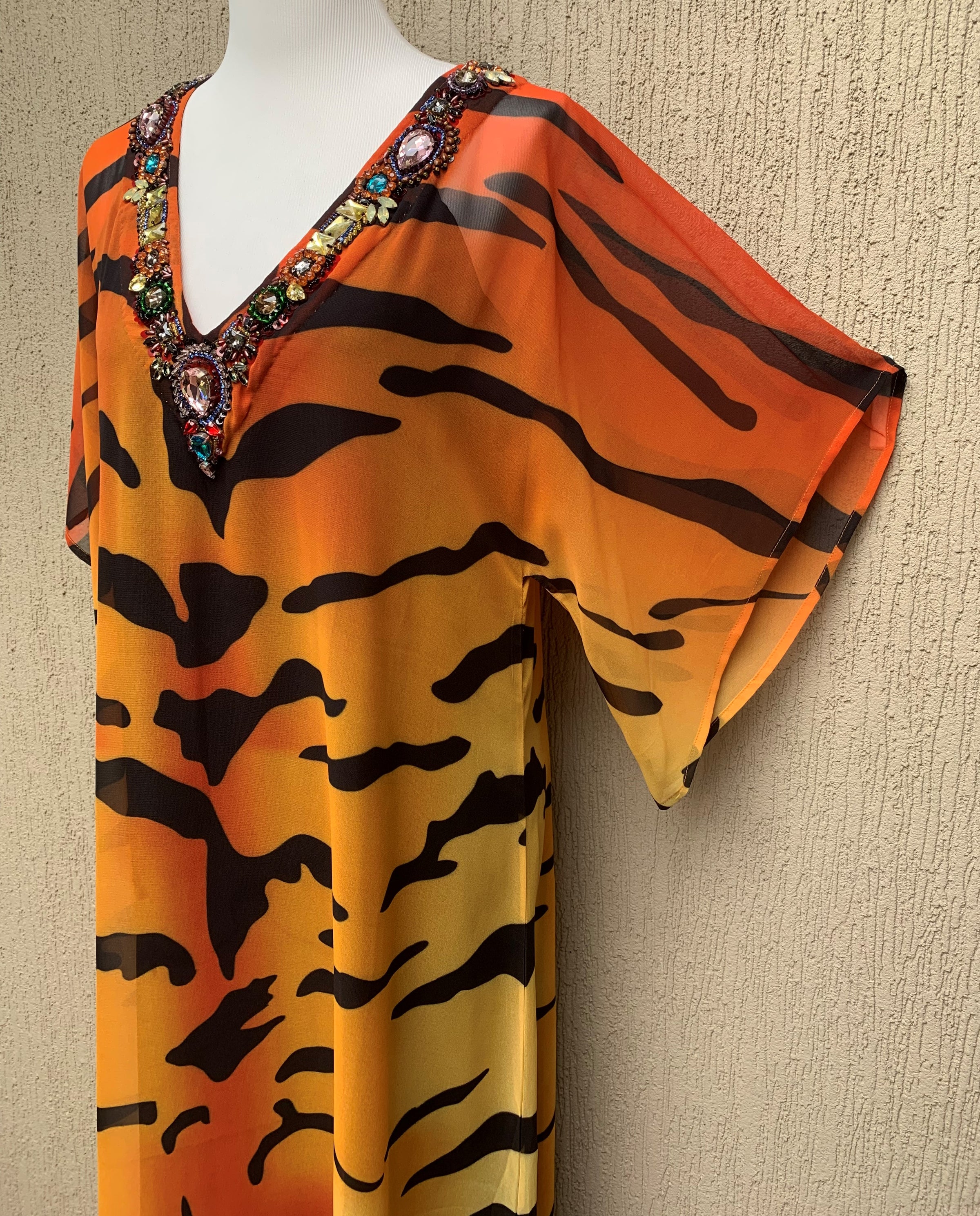 Great shape in this Kaftan and the hand beading on the neckline is absolutely stunning