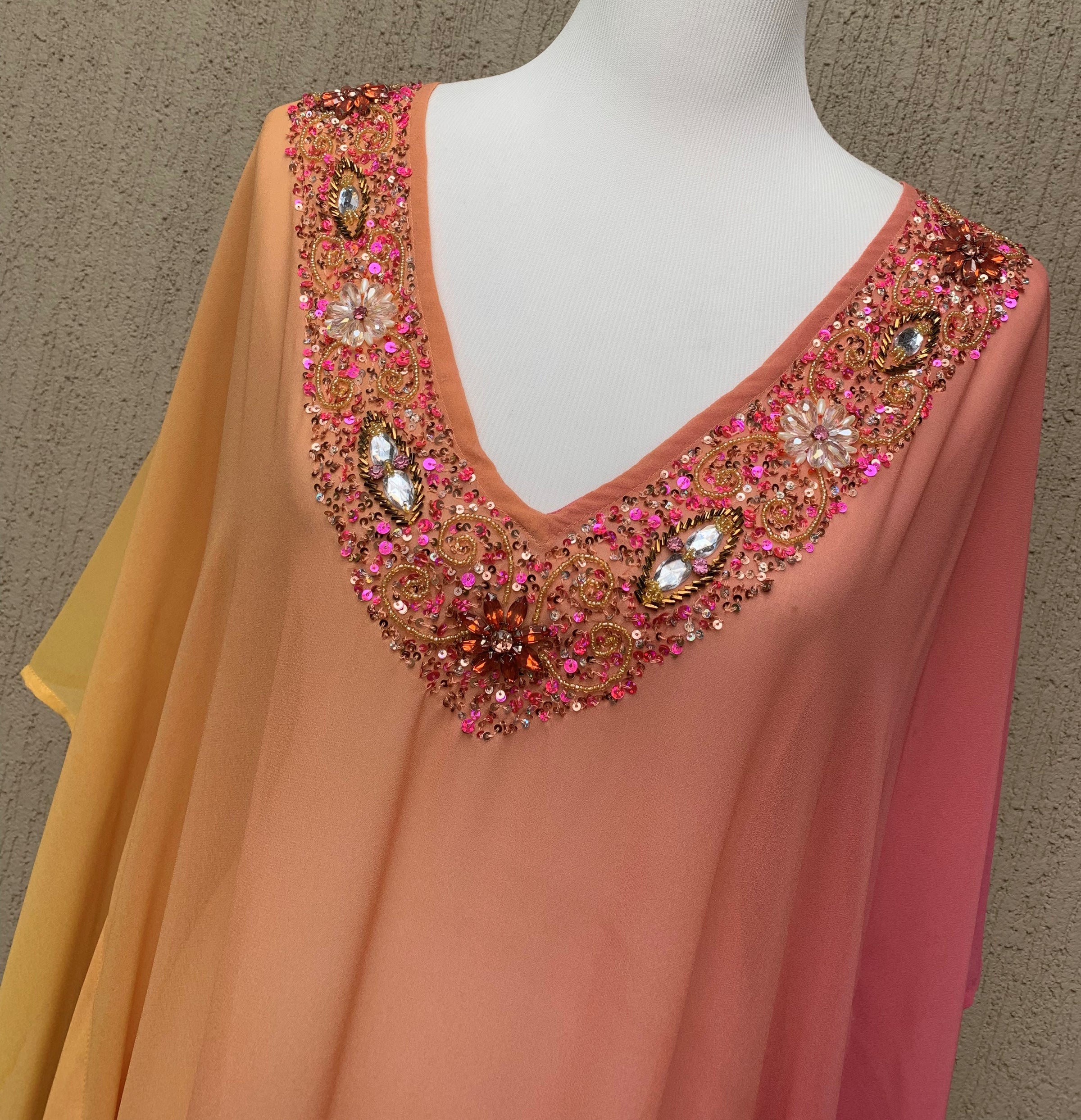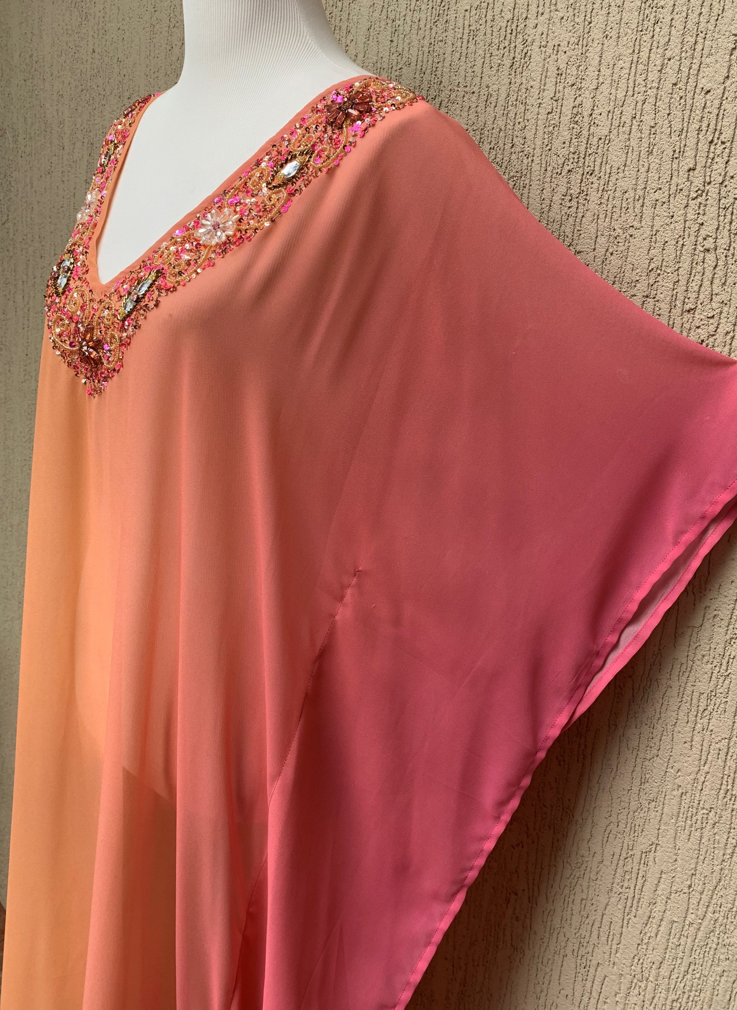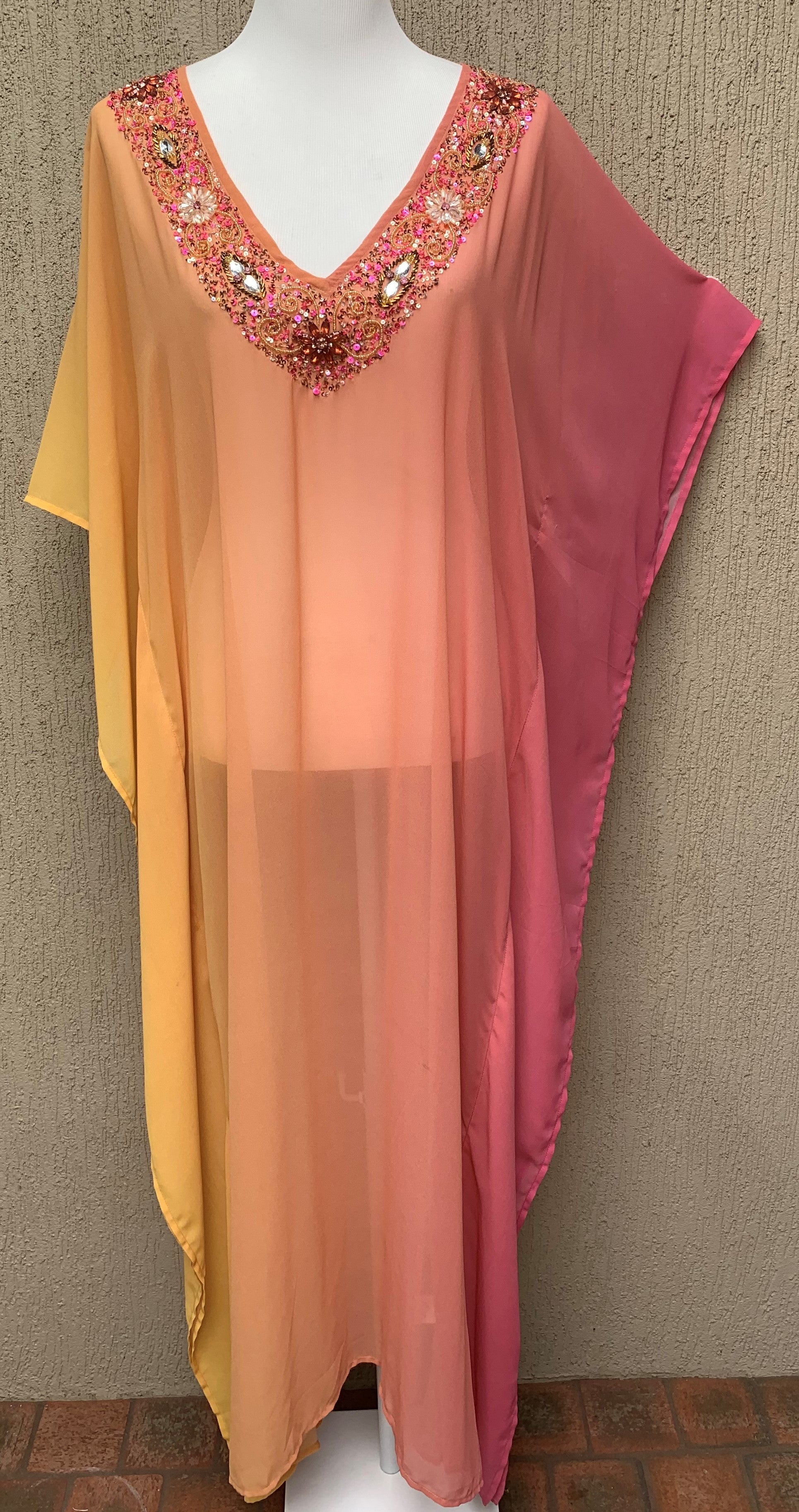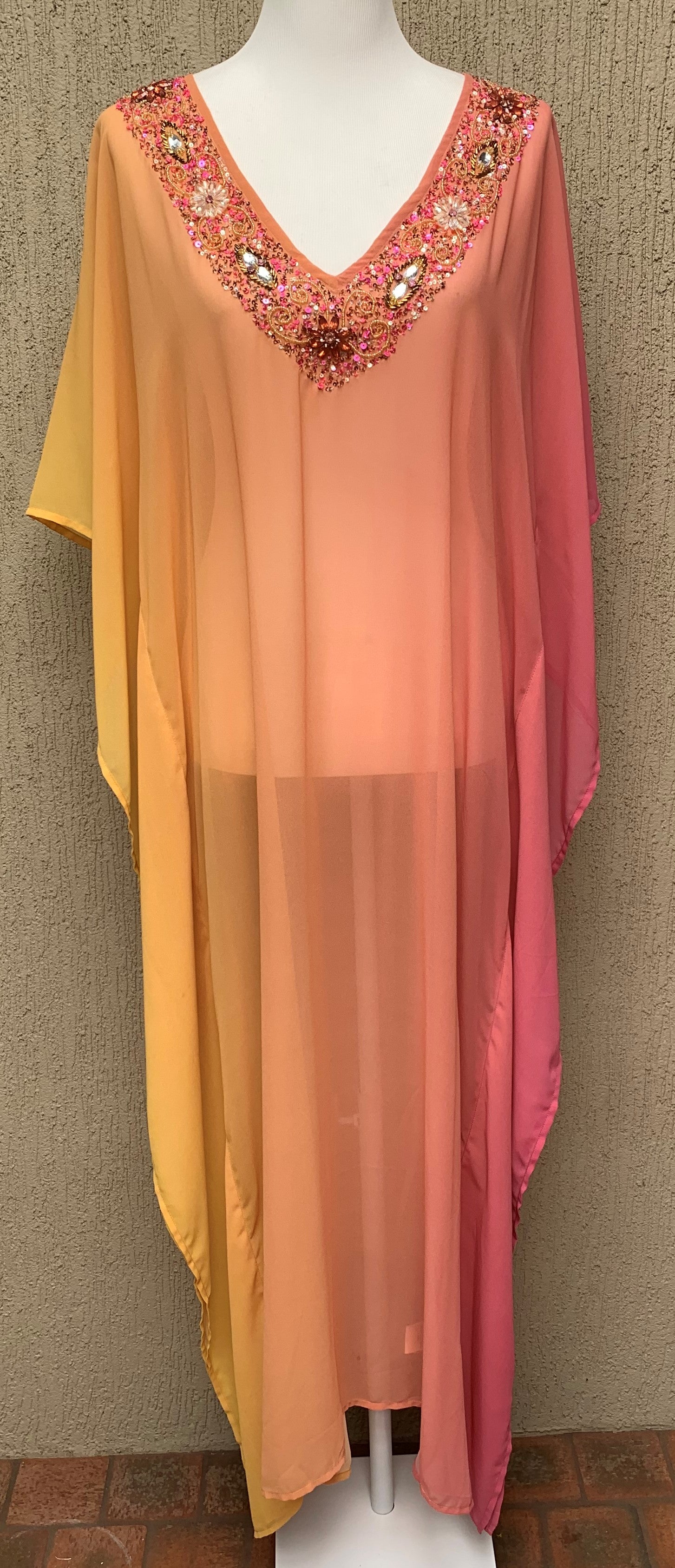Made from georgette it has a beautiful ombre effect thru the kaftan