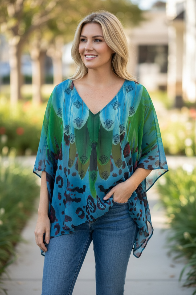 Silky soft georgette V neck kaftan with longer back length