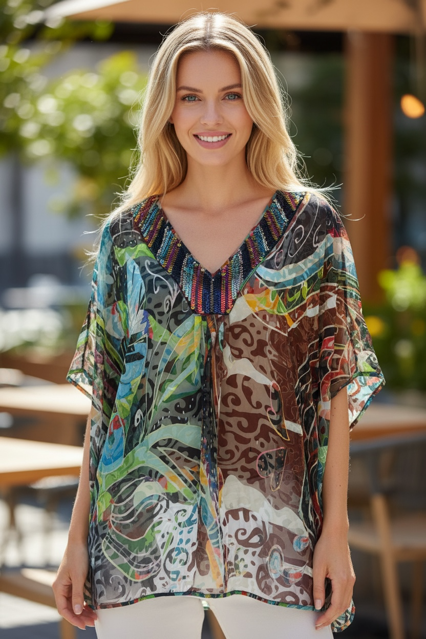 Beautiful Burn Out georgette V neck kaftan with solid hand beaded neck feature