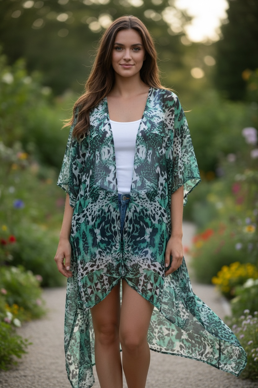 Hi lo kimono with sprinkles of sparkles through the front